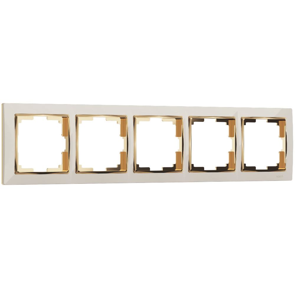 Рамка из поликарбоната Werkel Snabb на 5 постов Слоновая кость / Золото W0051932