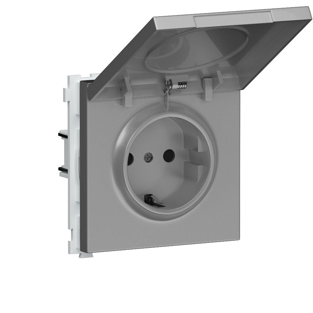 Розетка встраиваемая Donel R98 Schuko с крышкой и заземлением на винтах Алюминий матовый DA18800-DA52026