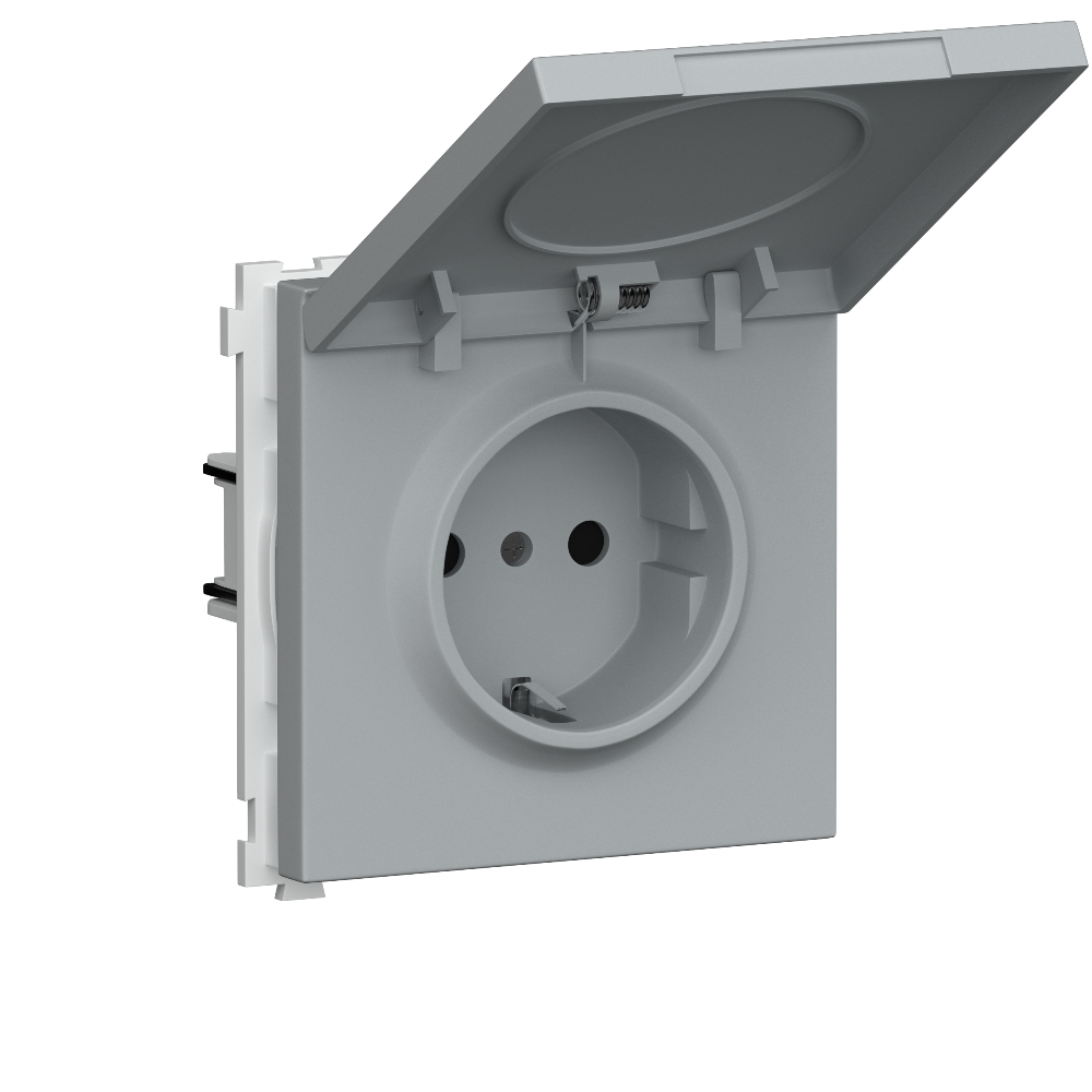 Розетка встраиваемая Donel R98 Schuko с крышкой и заземлением на винтах Серый матовый DA18800-DA52040