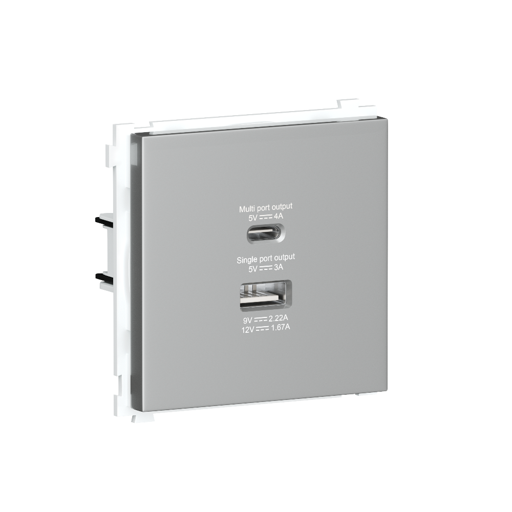 Розетка встраиваемая USB Donel R98 тип A+С быстрая зарядка Алюминий матовый DA20400-DA27726