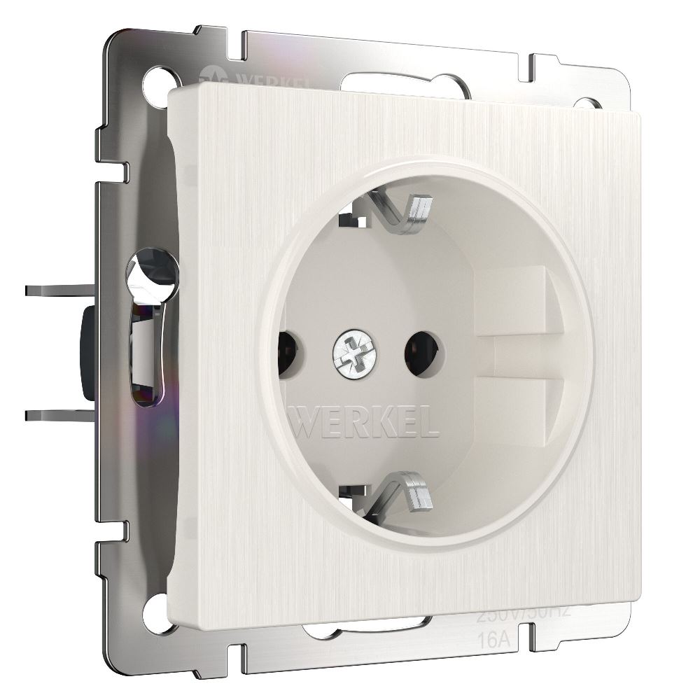 Розетка встраиваемая Werkel с заземлением и шторками Перламутровый рифленый W1171113