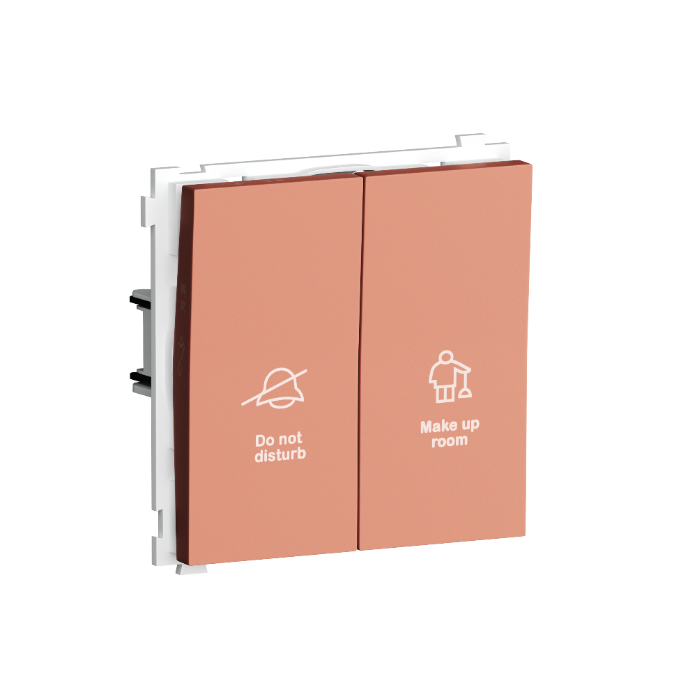Выключатель двухклавишный встраиваемый Donel R98 с символами DND/MUR Коралл матовый DA25800-DA88845